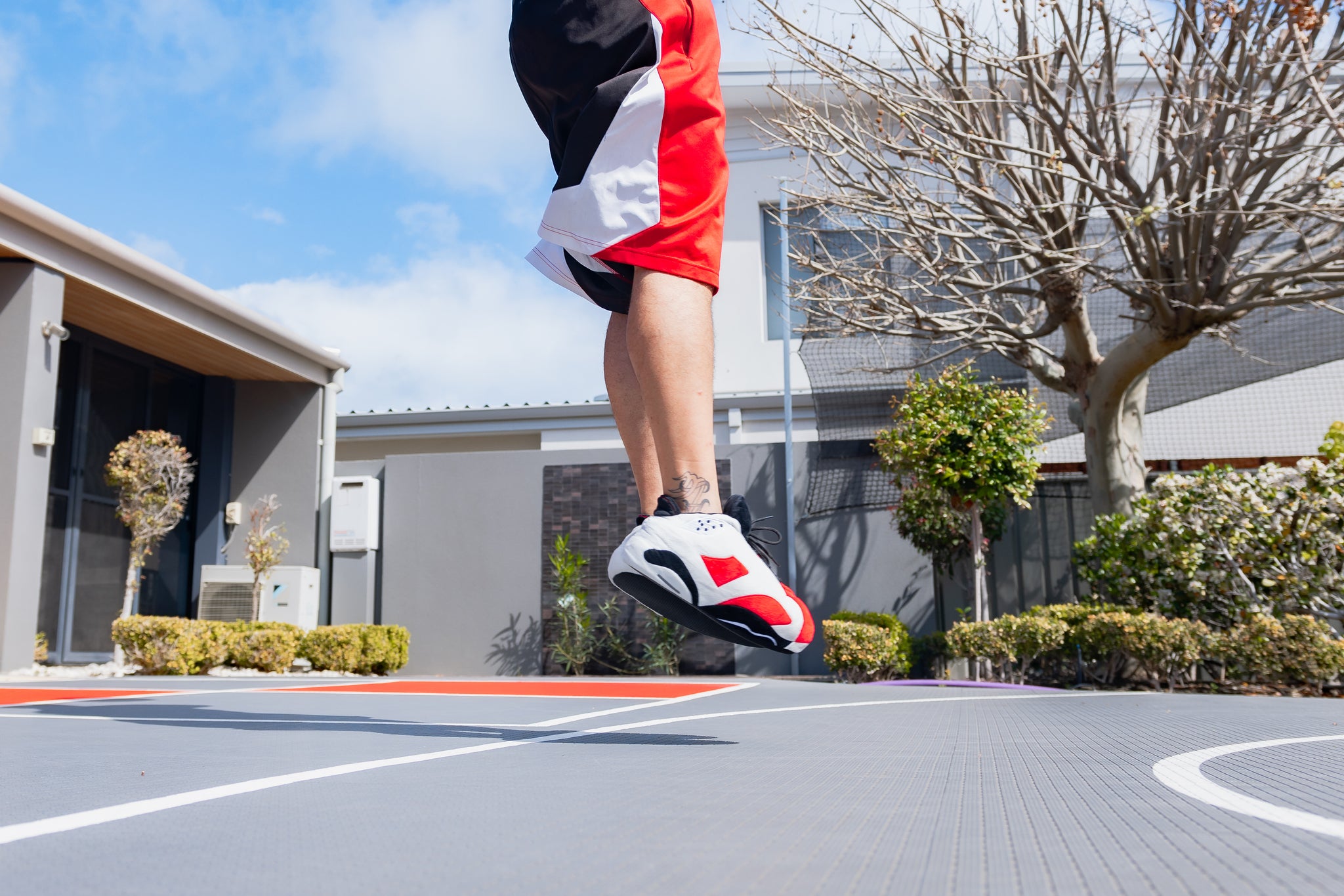 Step into comfort and style with the Jump Shot Siesta Sneakers, the perfect blend of sneaker and slipper for your relaxed moments. Featuring a striking white, red, and black colorway, these sneakers bring a playful pop to your casual look. Designed to feel as cozy as your favourite slippers, they offer lightweight support whether you're lounging at home or stepping out for a quick errand. Slip into a pair that says you’re ready for a siesta—but with a sporty edge!